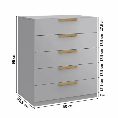 Cômoda 5 Gavetas 80cm Jade CabeCasa MadeiraMadeira Cinza Urbano